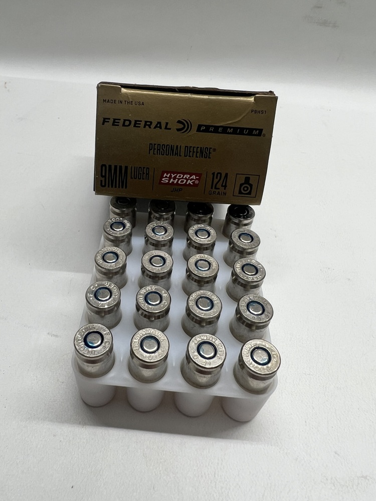 Federal Premium 9 mm Luger 124 Grain Hydra-Shok Jacketed Hollow Point Brass